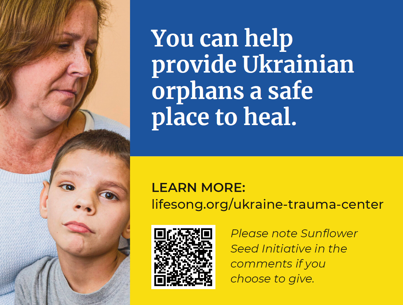 At any time and at any place in the world you can give directly to Lifesong For Orphans to further the construction of the Trauma Care Center in western Ukraine. Click on this LINK or scan the QR code above. Please know that all such giving is 100% confidential. The Sunflower Seed Initiative is not told, nor would want to know, who gave what.
